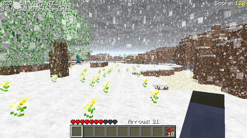 | Winter mode added. While generating a world, there is a 25% chance to get a snowy world, where snow falls continuously. | |||||||||||||||||||||||||||||||||||||||||||||||||||||||||||||||||||||||||||||||||||||||||||||||||||||||||||||