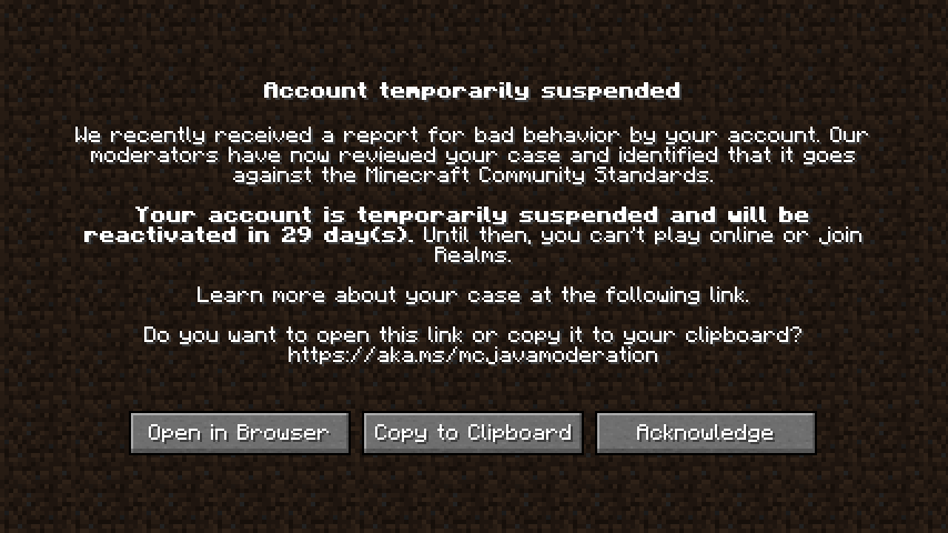 Players can be reported for sending certain messages the player doing the reporting would object to. Reporting a player is unavailable if the server cannot verify chat messages as most popular servers use mods and plugins to prevent the system to be used.
