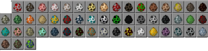 | Egg | Spawns | Notes | Java Edition | Bedrock Edition | Legacy Console Edition | New Nintendo 3DS Edition |