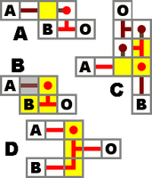 Different ways to make an IMPLIES gate from redstone. See Mechanics/Redstone/Circuit for details. Credits: This image of simple geometry is ineligible for copyright and is therefore in the public domain. It consists entirely -
