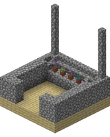 An example of an altar in a woodland mansion. This altar room is rather complex, with banners hanging from an overhead statue of sorts. This file (or parts of it) is copyright Mojang Studios This -