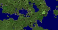 An image taken from Notch's Tumblr blog post for Infdev (June 11, 2010), with a monolith visible on the right side near the coast. This file (or parts of it) is copyright Mojang Studios -
