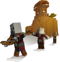 A group of Pillagers emerging near a Pillager Outpost. Source: https://www.minecraft.net/en-us/updates/village-pillage This file (or parts of it) is copyright Mojang Studios This screenshot, texture, audio, song, or -
