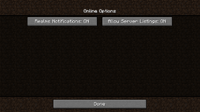 The default online options. This file (or parts of it) is copyright Mojang Studios This screenshot, texture, audio, song, or other Mojang asset, or derivative of Mojang assets, does not fall under the Fandom Terms -