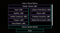 The Music& Sounds menu. This file (or parts of it) is copyright Mojang Studios This screenshot, texture, audio, song, or other Mojang asset, or derivative of Mojang assets, does not fall under the Fandom Terms -