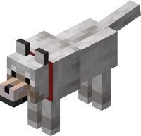A tamed wolf. This file (or parts of it) is copyright Mojang Studios This screenshot, texture, audio, song, or other Mojang asset, or derivative of Mojang assets, does not fall under the Fandom Terms of -
