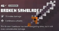 The Broken Sawblade in the inventory. This file (or parts of it) is copyright Mojang Studios This screenshot, texture, audio, song, or other Mojang asset, or derivative of Mojang assets, does not fall under the -