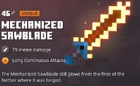 of the Flames of the Nether DLC. A broken sawblade is a melee weapon that can be found within the flames of the nether DLC of Minecraft Dungeons. Its unique variant is the mechanized sawblade. -