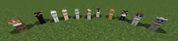11 cat variants (from left to right): Tabby, Black, White, Persian, Ragdoll, Calico, Siamese, Red, Tuxedo, Jellie and British shorthair. This file (or parts of it) is copyright Mojang Studios This screenshot, texture, audio, song -