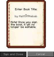 Book and Quill This file (or parts of it) is copyright Mojang Studios This screenshot, texture, audio, song, or other Mojang asset, or derivative of Mojang assets, does not fall under the Fandom Terms of -