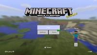 An screenshot from Minecraft: Apple TV Edition Title Screen. Dated December 28, 2016. This file (or parts of it) is copyright Mojang Studios This screenshot, texture, audio, song, or other Mojang asset, or derivative of -