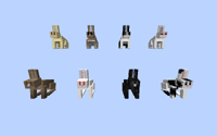 All 8 rabbit skins in the game as of 1.8-pre1, after model and texture refinements. Left to right: Brown, White, Black, Black& White, Gold, Salt& Pepper, Toast, Killer. This file (or parts of -