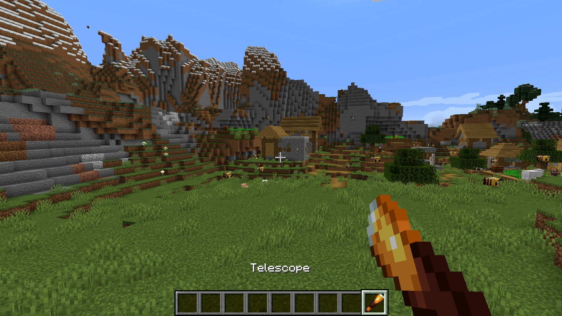 Hazy distant objects remain hazy when viewed in the spyglass. Mobs too distant to render also do not render in the spyglass. The spyglass shows a magnified view of what the player already sees.
