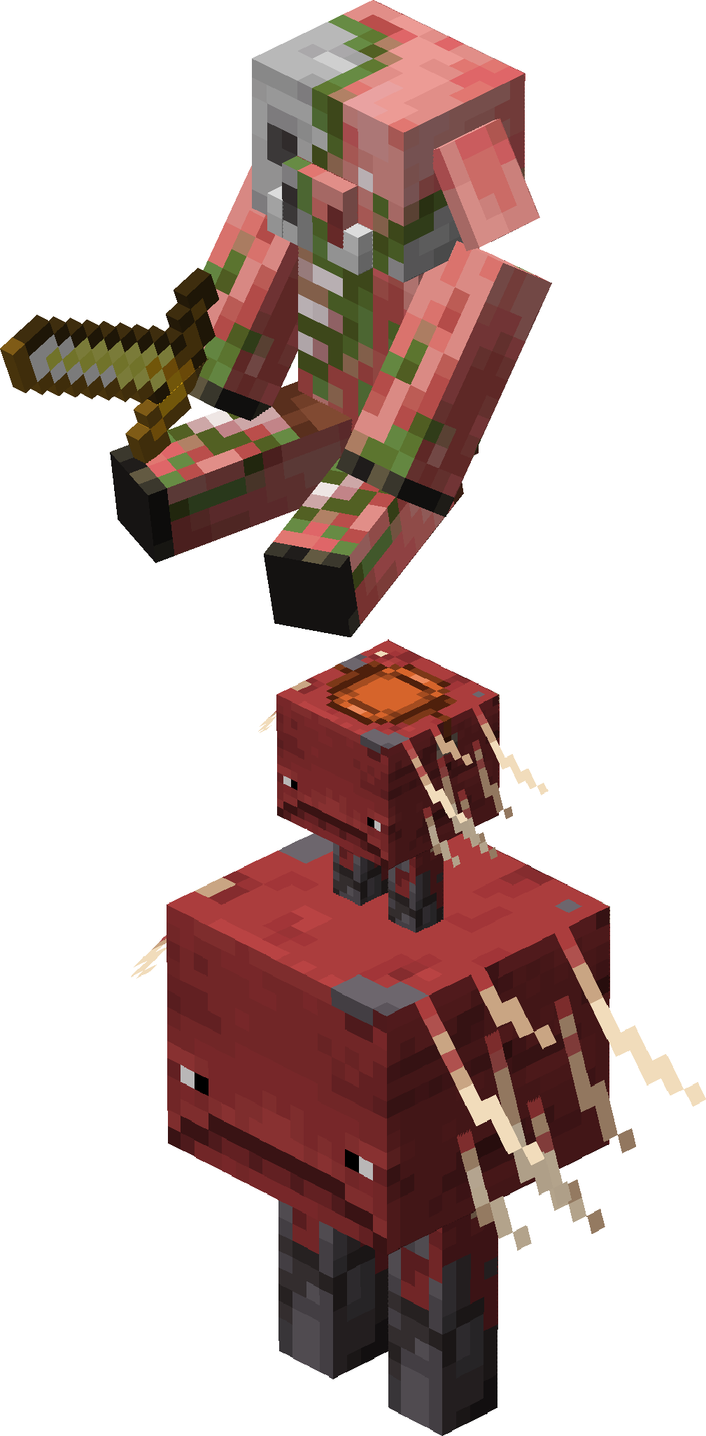 ![A possible rare case in which a zombified piglin is on a baby strider on an adult strider.[Java Edition only]](https://static.wikia.nocookie.net/minecraft_gamepedia/images/3/30/Strider_Stack_Jockey.png/revision/latest/scale-to-width-down/59?cb=20200402171456)