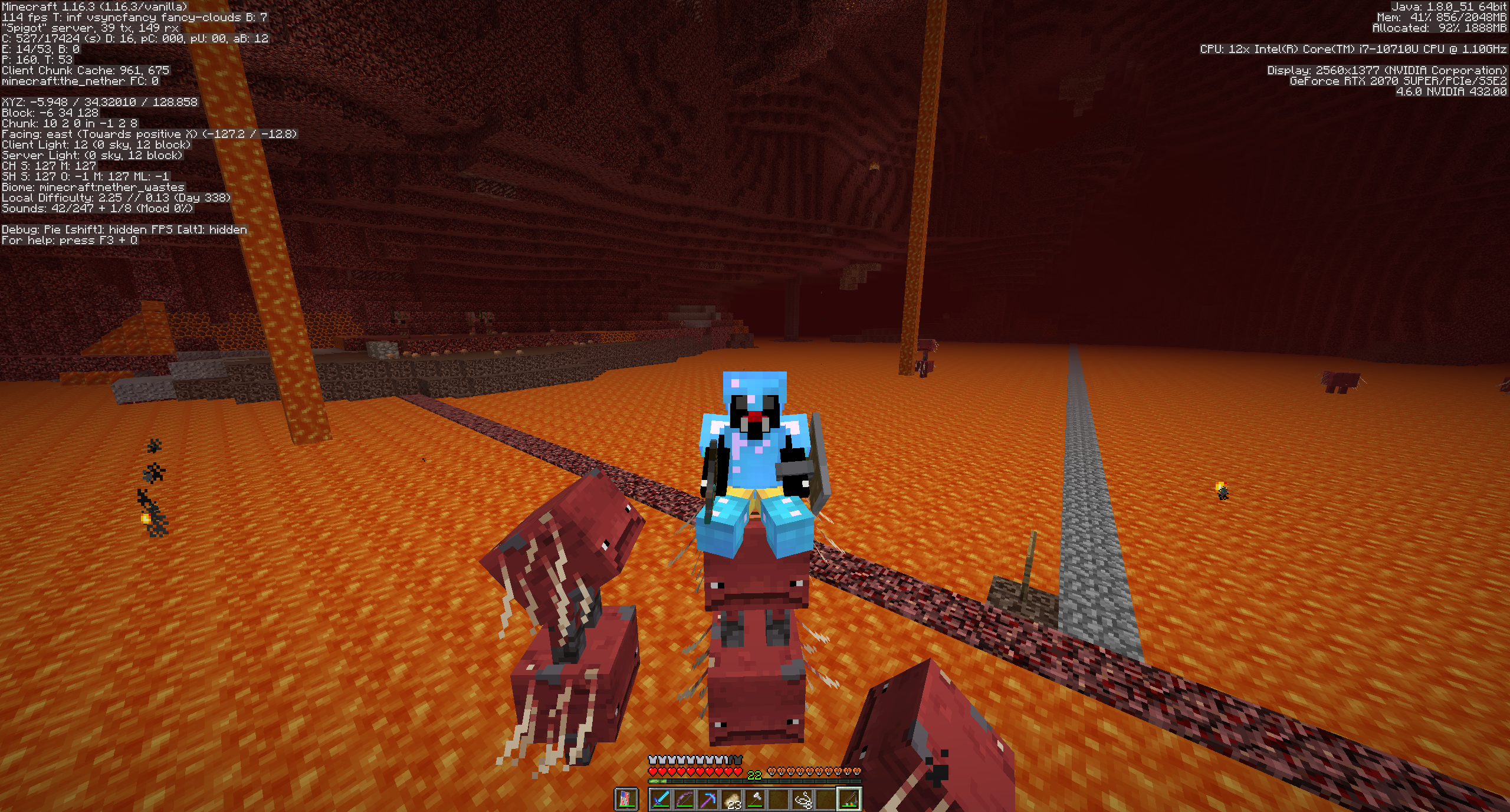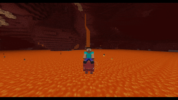 To safely dismount from a strider, a player who does not have fire resistance may face a solid block within reach before dismounting to dismount onto that block[4], instead of at the strider's location (which is usually in lava[5]).