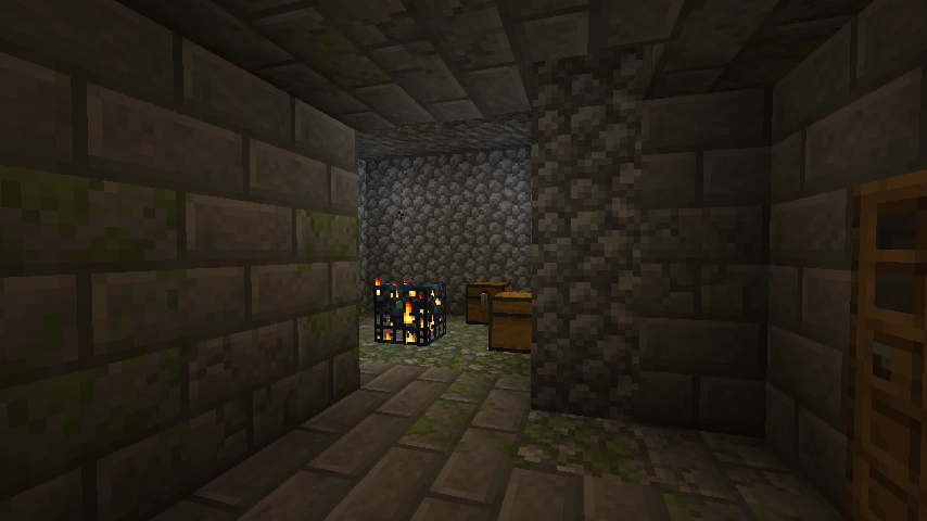 A zombie dungeon. Though not technically part of the stronghold, dungeons can generate in strongholds.