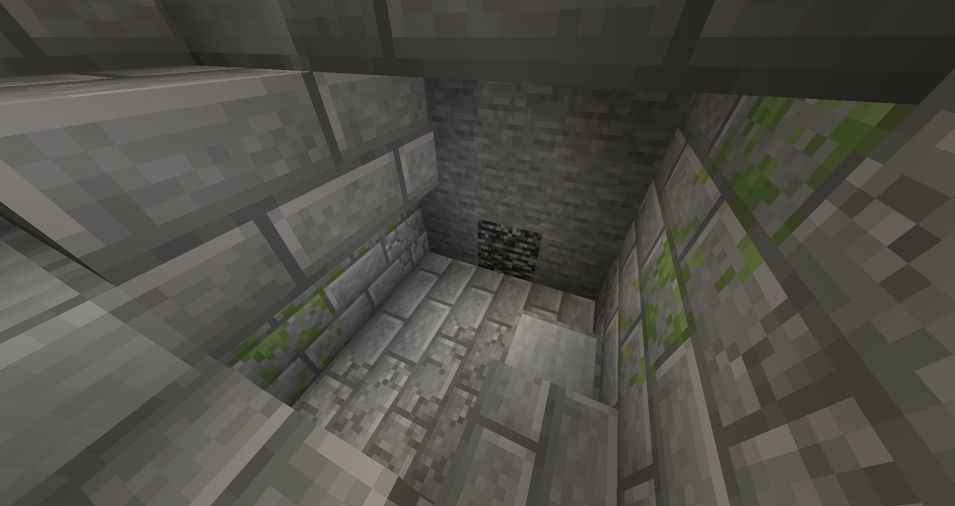 - Spiral staircase: A 3×3 spiral stair made of stone bricks and stone brick slabs, leading down, with an exit at the bottom. Like 5-way crossings, there is always one flight per stronghold as part of the starting point, while an additional 0–5 flights may also generate.