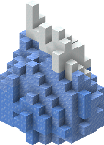 Icebergs are structures that generate in frozen oceans and their deep variants. They consist primarily of packed ice with a little bit of ice and blue ice, and will often be topped with snow. They are the only place where blue ice can be found naturally. Icebergs generate in a wide variety of shapes and sizes, ranging from small "islands" to giant mountain-like ice structures. They can also generate with "cave-like" holes in them, which sometimes reach to the other side of the iceberg. Polar bears can also spawn here, much like other cold biomes.