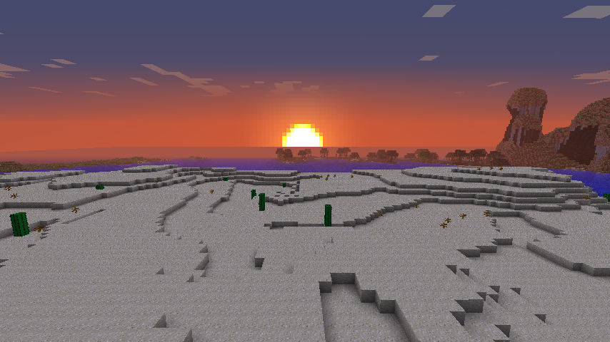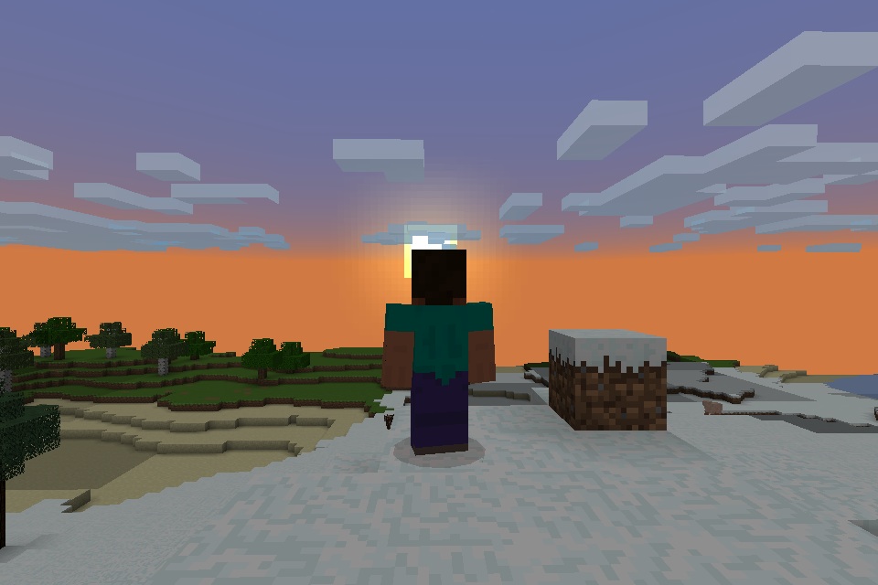 When the sun rises and sets, blocks exposed to sunlight change their light level depending on the angle of the sun, giving the effect of gradually getting lighter at dawn and gradually getting darker at dusk. However, shadows of blocks are not affected by the position of the sun in the sky, making sundials impossible.