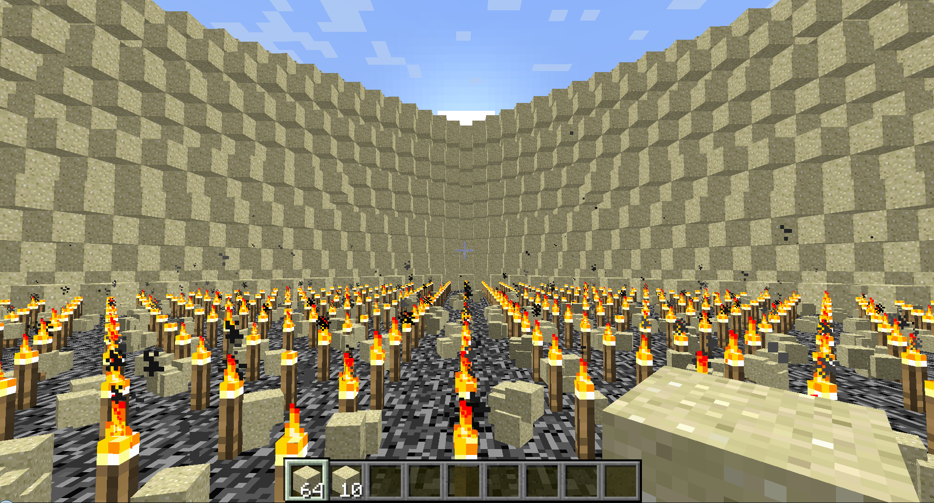 Mineshafts generated above the ground in Superflat.