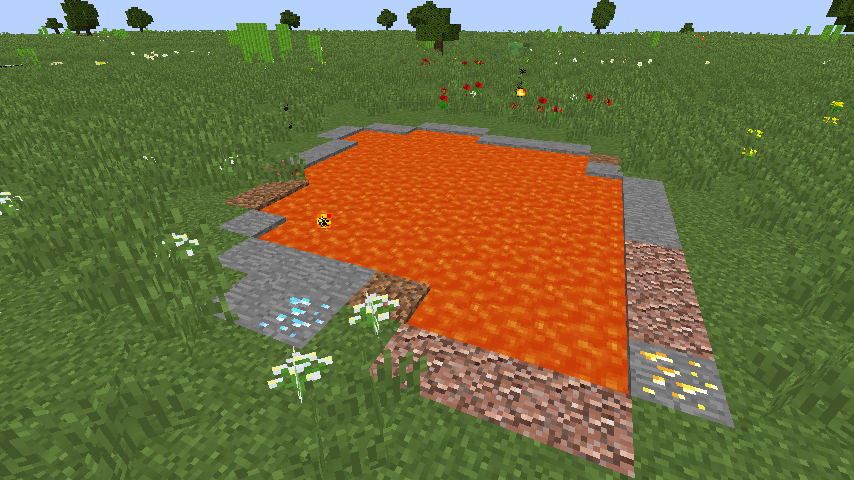 | lava_lake | None | Generates lava lakes, with stone surrounding them. If all stone layers are removed in a preset that enables lava lakes, ores can generate in the stone around lava lakes, given the proper altitude. | All |
