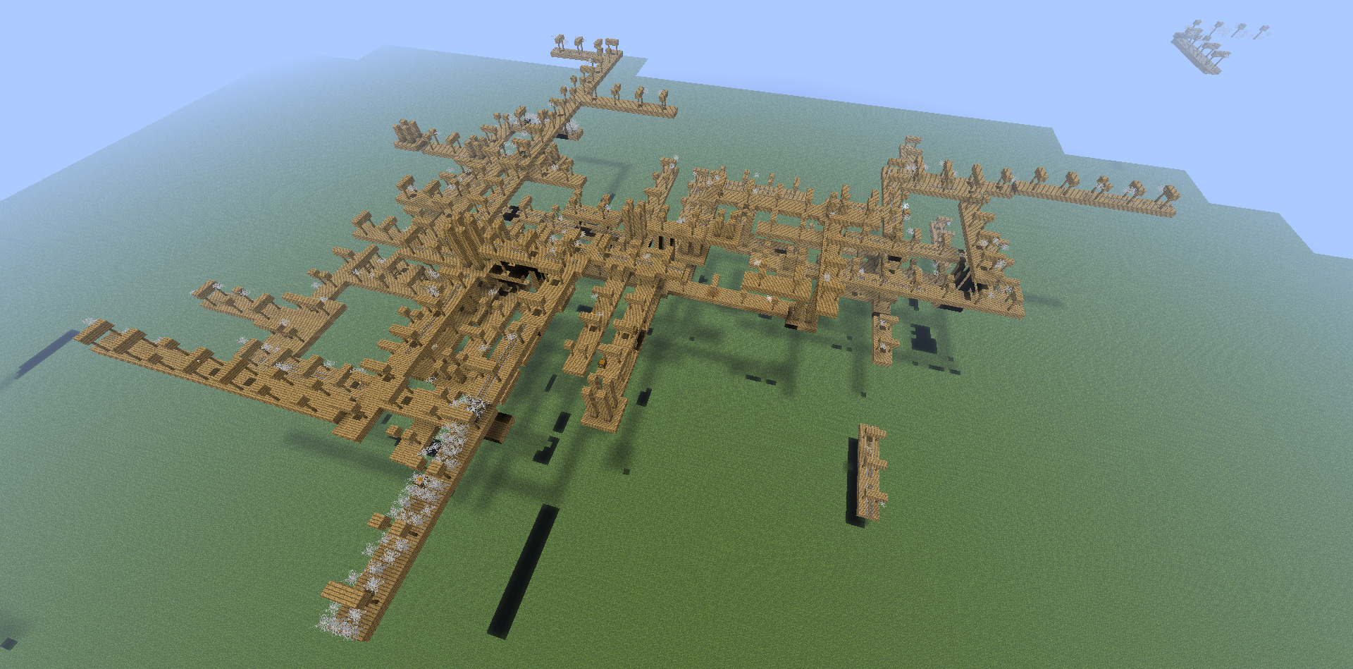 Mineshafts generated above the ground in Superflat.