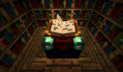 Between the bookshelves and the enchantment table there must be an empty space on all sides. Bookshelves placed directly against the enchantment table do NOT contribute to the enchantment table and leaves the enchantments unaltered.
