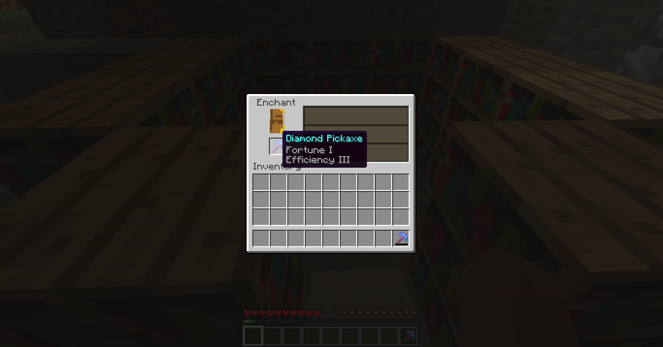 - Not according to the wiki, and my own experience: "Divide the modified level in half, rounded down. (This does not affect the possible enchantments themselves, because they were all pre-calculated in Step Two.)" I have a pickaxe (from before Silk Touch and Fortune were made incompatible) with all four enchanments: U3, E3, F2, S1. This would be mathematically impossible if what you claim is true. So one of the following must be true: the numbers in the wiki are incorrect, or the algorithm described in the wiki is otherwise incorrect, or the screenshot is faked (which strains credulity since it would be possibly the lamest prank ever), or the algorithm and screenshot correspond to two different versions with different enchanting algorithms. --173.137.232.195 15:54, 12 December 2011 (UTC)