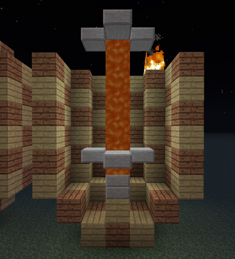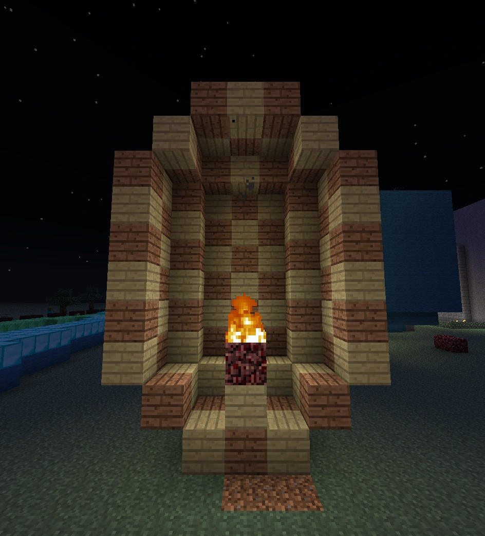 - Brick appears to work fine also. Creating a "fire pit" out of bricks with a wooden one in the centre and lighting the wood one on fire has worked for me. I tried making a 5-block star out of wood and igniting it also (Left, Right, Up, Down, Centre). After punching out the flames, I only had a row of 3 left but they now burn indefinitely. I'm unsure of the exact mechanics of this. -- Tukimoshi –The preceding undated comment was added on 03:17, 14 January 2011. Please sign your posts with ~~~~