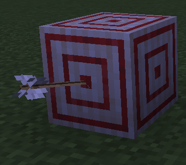 A target is a block that produces a temporary redstone signal when hit by a projectile. Unlike most other conductive blocks it also redirects adjacent redstone dust towards it.