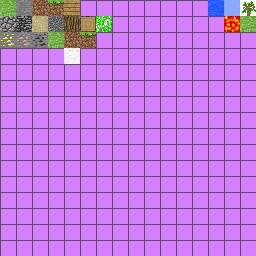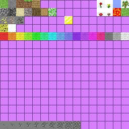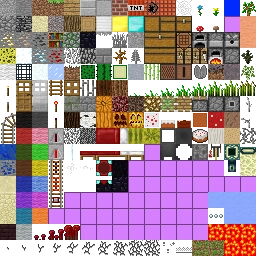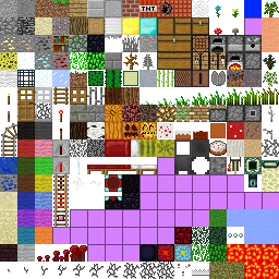 Unused sections of the texture are occupied by lilac squares, which distantly resemble the missing texture used from 13w16a onwards. The paintings sheet also used this purple texture, however other atlases, like items.png and particles.png, did not.
