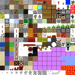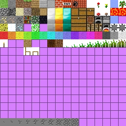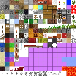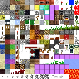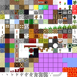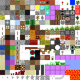 terrain.png is a fixed-width 256×256-pixel file that is split into different 16×16 squares which correspond to the texture for each block found in-game.