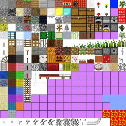 - Missing Beta 1.8 changes: mossy cobblestone texture, and two of the other unused textures at the bottom of the file