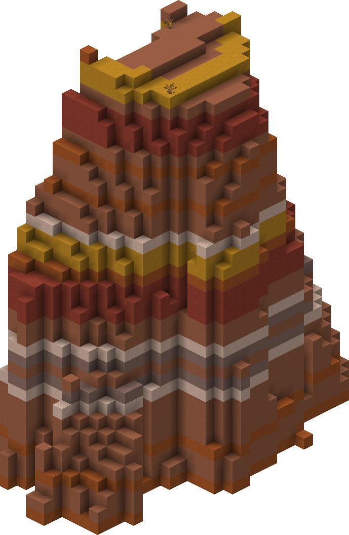 Hoodoos are tall spike-like structures found in badlands, consisting of six colors of terracotta. While this structure is found exclusively in eroded badlands, all badlands biomes actually have this structure, but set to false except for eroded badlands and can occasionally pass altitude layer 100.