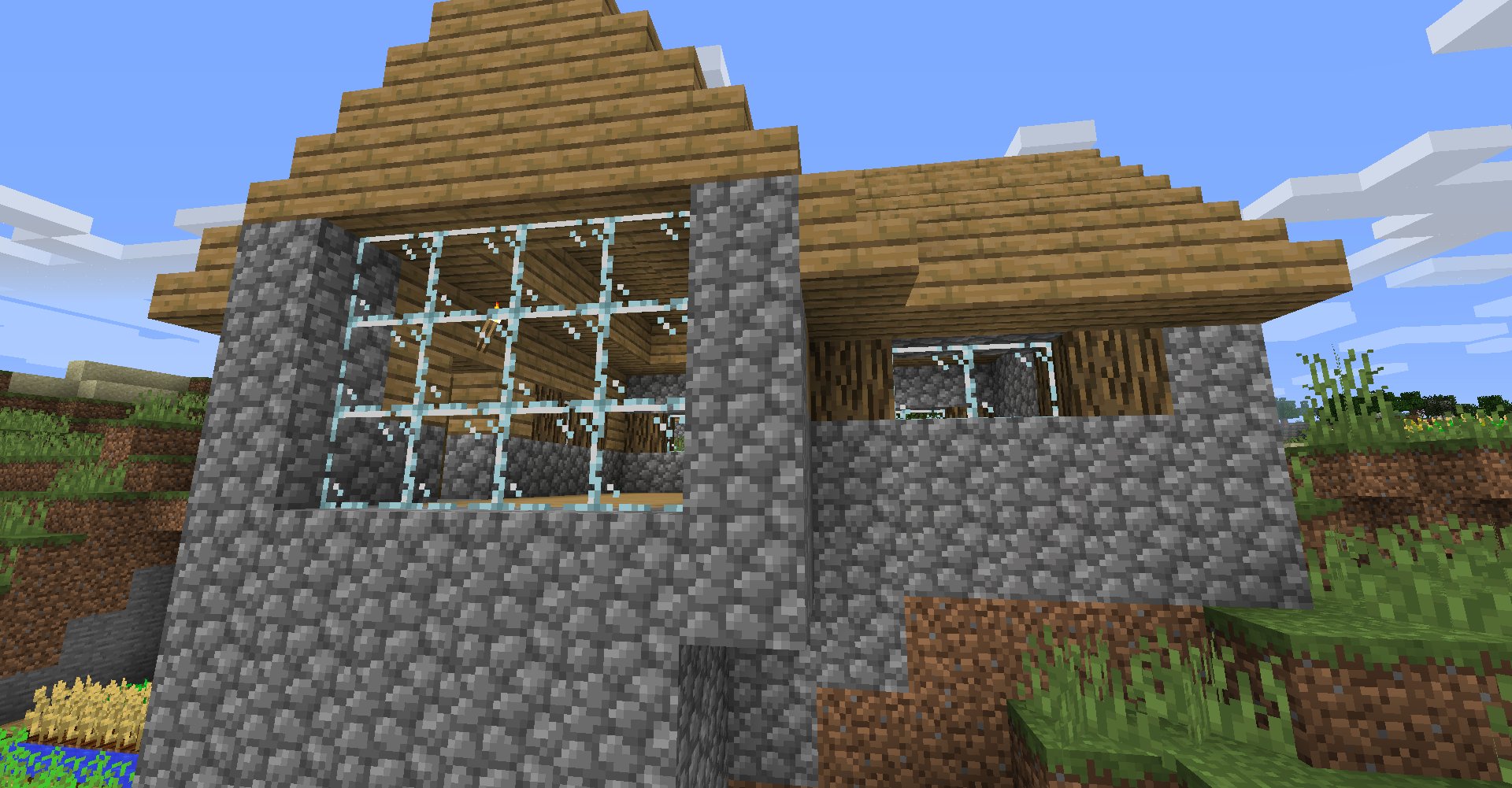 Cobblestone and spruce planks.