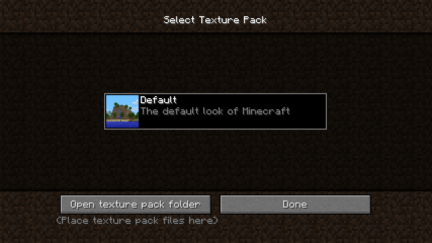 - In a few seconds the texture pack appears in Minecraft. Select it and click "Done". The texture pack is now applied. If Minecraft did not update, simply exit and reopen the texture packs screen.