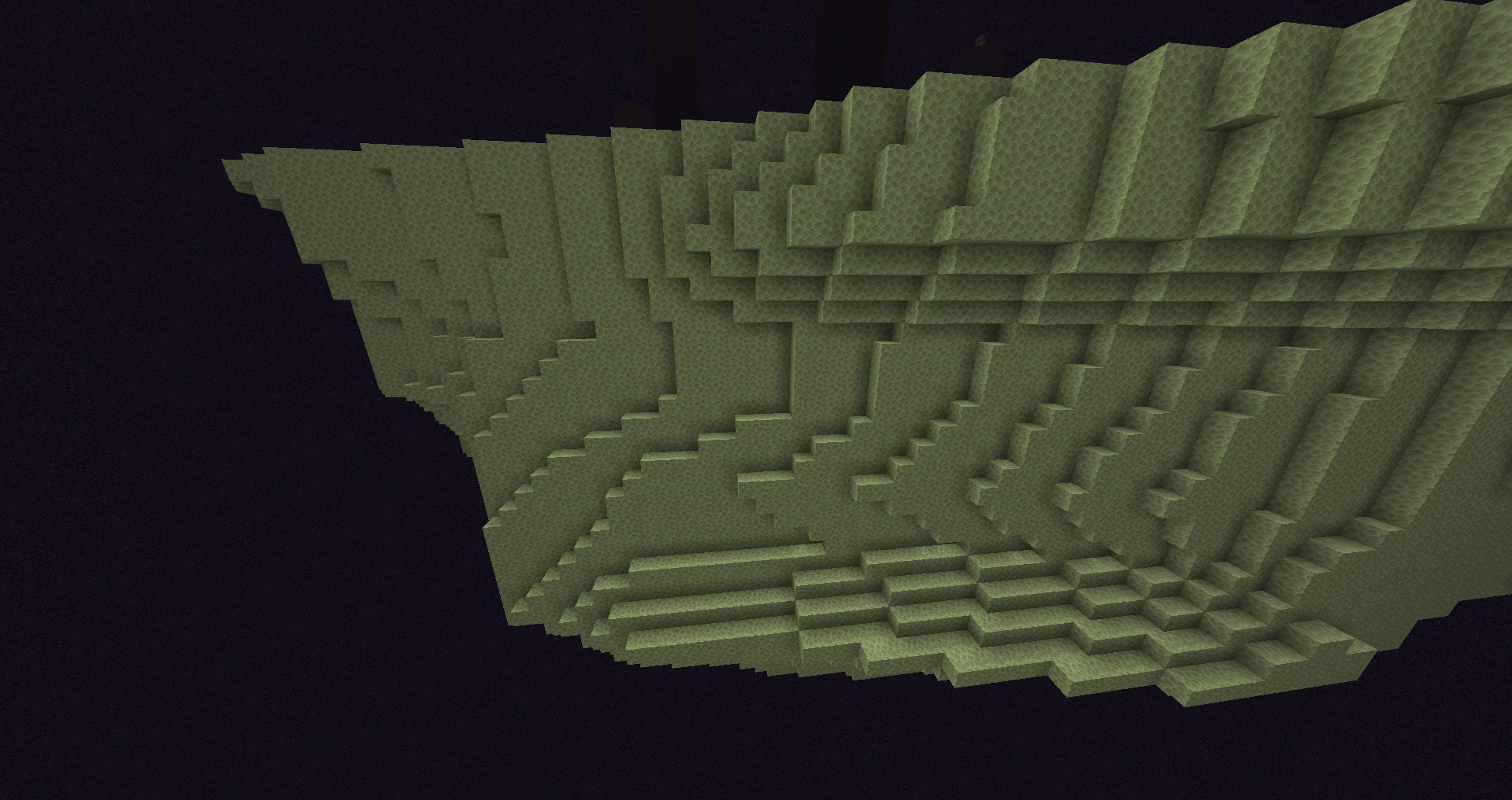 In Java Edition, due to a bug[1], the outer End islands fail to generate in multiple concentic rings. The first ring ends at ±370,719 on the X and Z axes, cutting off terrain generation in a doughnut shape. It continues empty, but the second ring starts at X/Z=(-)524,288, then disappears again at X/Z=(-)642,111 and comes back at X/Z=(-)741,456. It continues like this all the way until the world border, getting closer and closer. If the world border would be removed, going far enough would lead to world looking slightly like the stripe lands of Bedrock Edition.