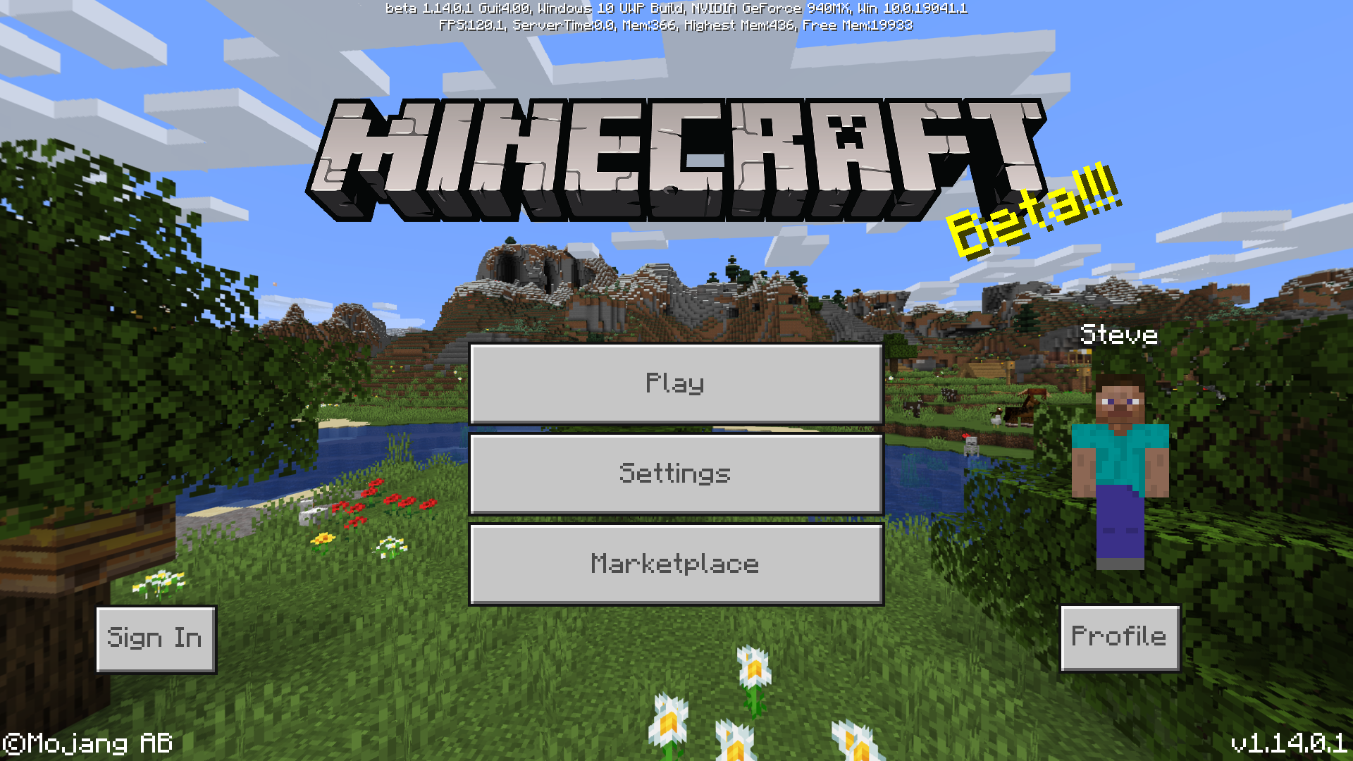 | Marketplace | Lets the player buy worlds, resource packs, skin packs, and other community-created content. The button is sometimes textured and animated, depending on what's currently being promoted on the Marketplace. |