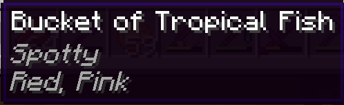 When hovering over an item in the inventory with the mouse cursor, a tooltip with the item’s name will appear next to the cursor. Some items display extra information on their tooltips, such as enchantments and shulker box contents. Basic item tooltips are also visible in the "Items" section of the statistics menu when hovering over a block or item on the left side of the screen.[JE only]