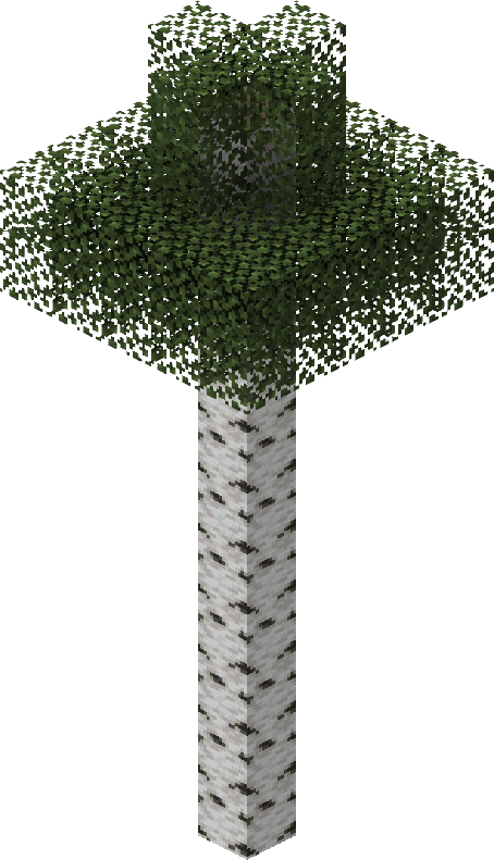 Birch trees look fairly similar to small oaks in terms of height and are most commonly found in birch forest biomes. There are two types of birch: a shorter tree that can be grown by the player with birch saplings; and a taller, rarer variety that generates only naturally in tall birch forest biomes.