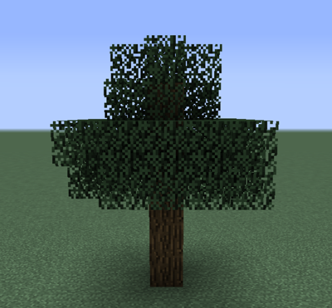 Tree canopies are composed of leaf blocks and grow 1 block higher than the highest log block (except those of the fancy oak, whose leaves grow 3 blocks higher). The canopy may begin from the ground and go up to 6 blocks from the ground. Tree canopies are generated from roughly spherical clusters of leaves about 5–7 blocks across, centered on sections of trunk or branches. Leaves must be supported by an adjacent trunk (or leaf blocks connected to the trunk); otherwise, they disappear.