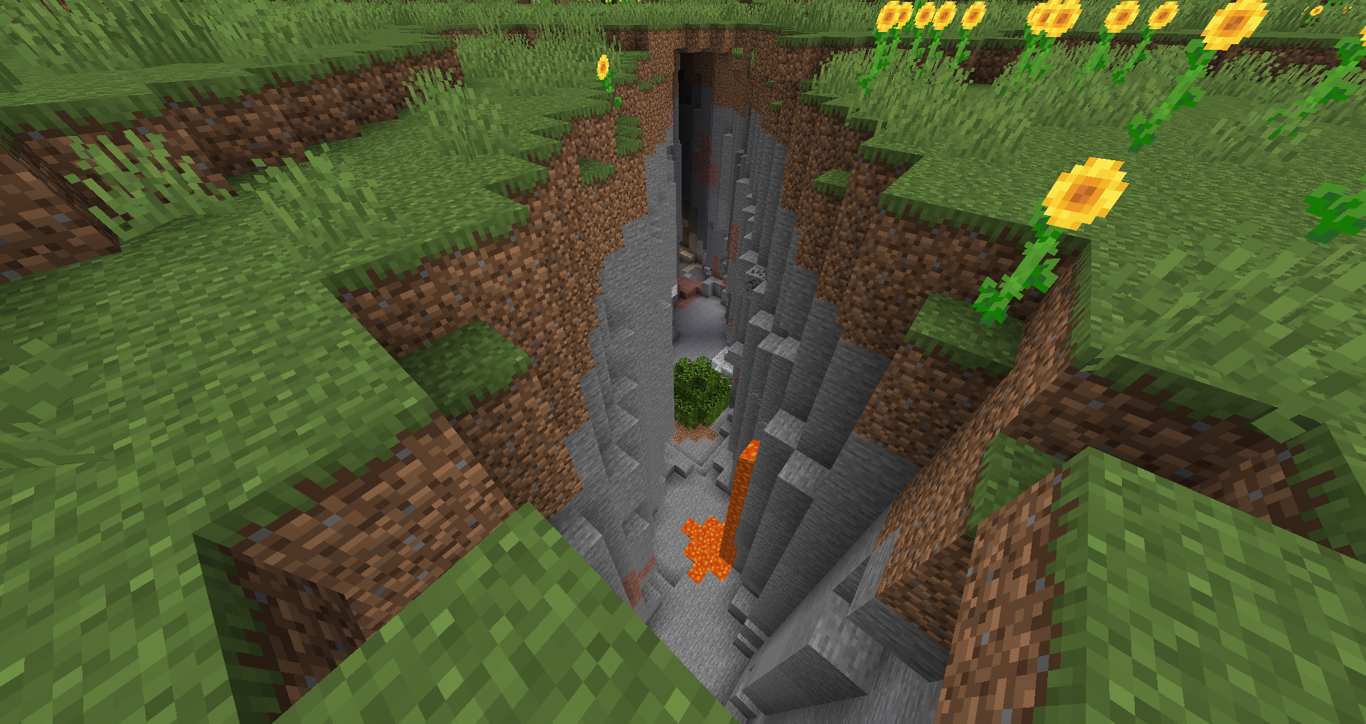 Azalea trees generate on any empty space above a lush cave, with roots consisting of rooted dirt and hanging roots that reach down to the lush cave. The tree usually appears at the surface, but they can generate inside caves if there is enough room and a lush cave below.