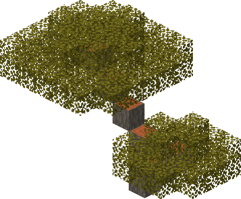 These trees consist of a single upright log, or stump. Logs lying on their side are often found 1–2 blocks from the stump.