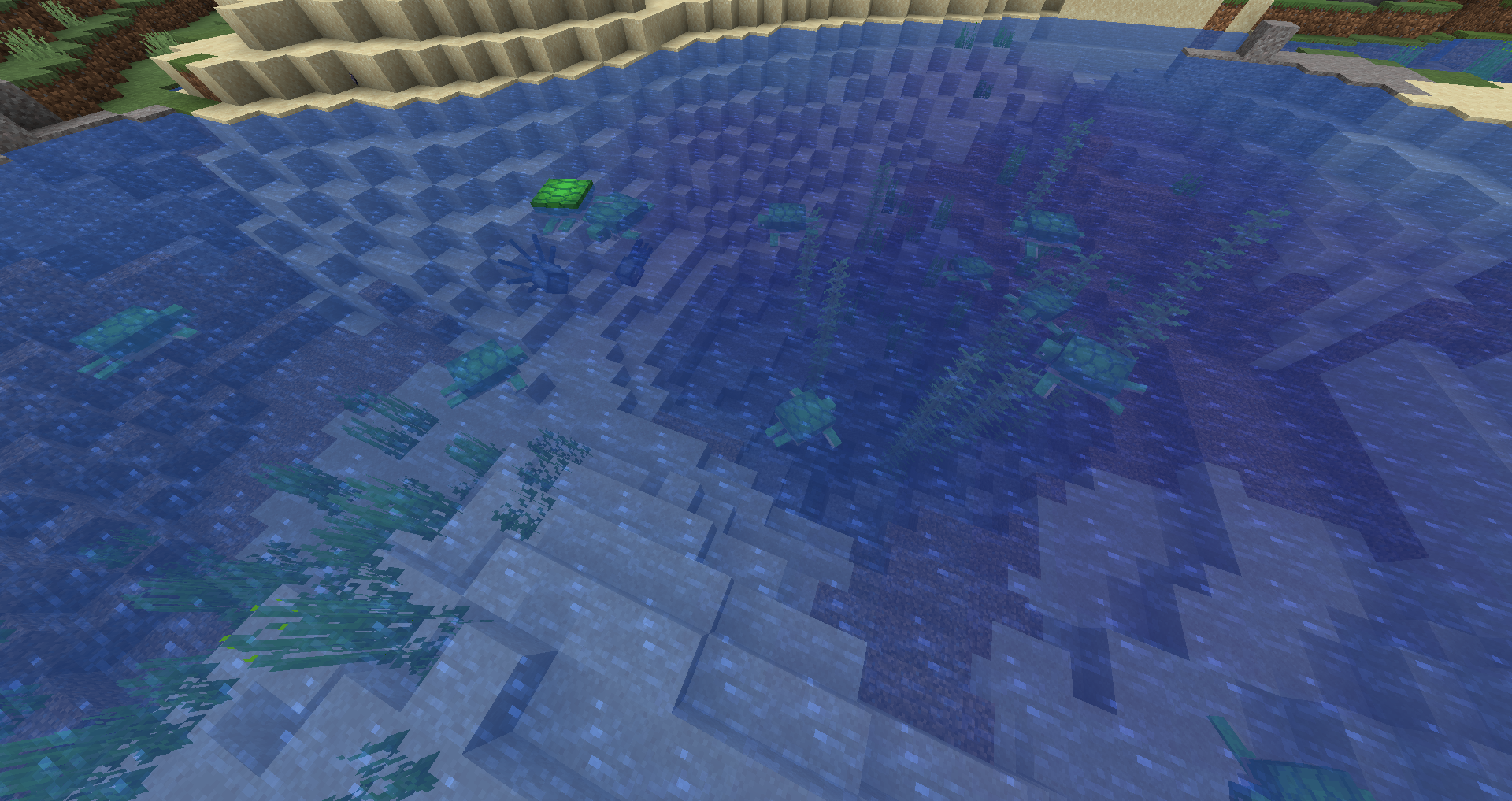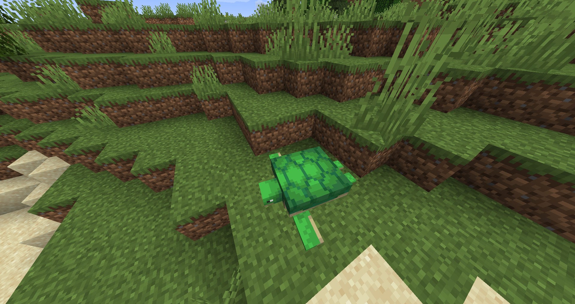 Turtles spawn on the sand in the Overworld on beaches with daylight, but not in its snowy variant or stony shores, occasionally in small groups of up to 5 individuals.