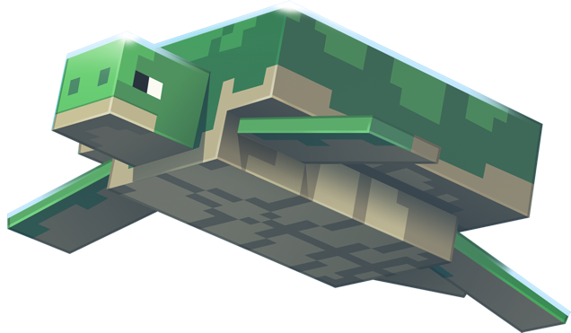 A turtle (in Java Edition), also known as a sea turtle (in Bedrock Edition), is a common passive mob found in beach biomes. They are the only source of scutes, which drop from baby turtles when they mature into adults.
