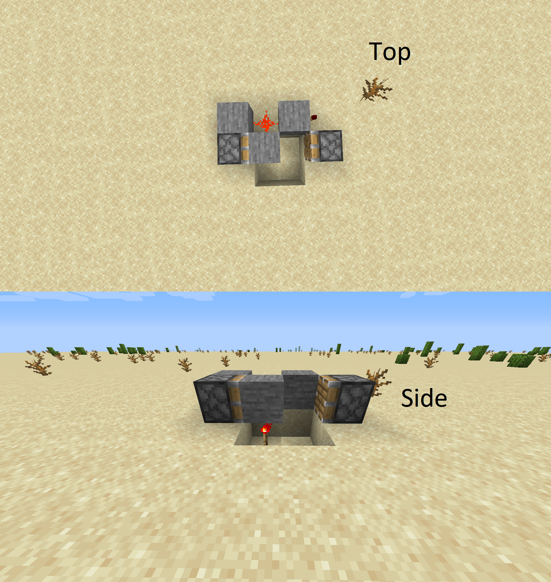 - Add two more Redstone Torch to the remaning sides of block (Top and Front)
