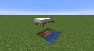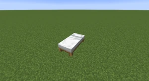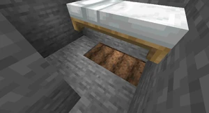 8. While standing on the bed place the door on the same side of the bed that the crafting table and furnace is on.
