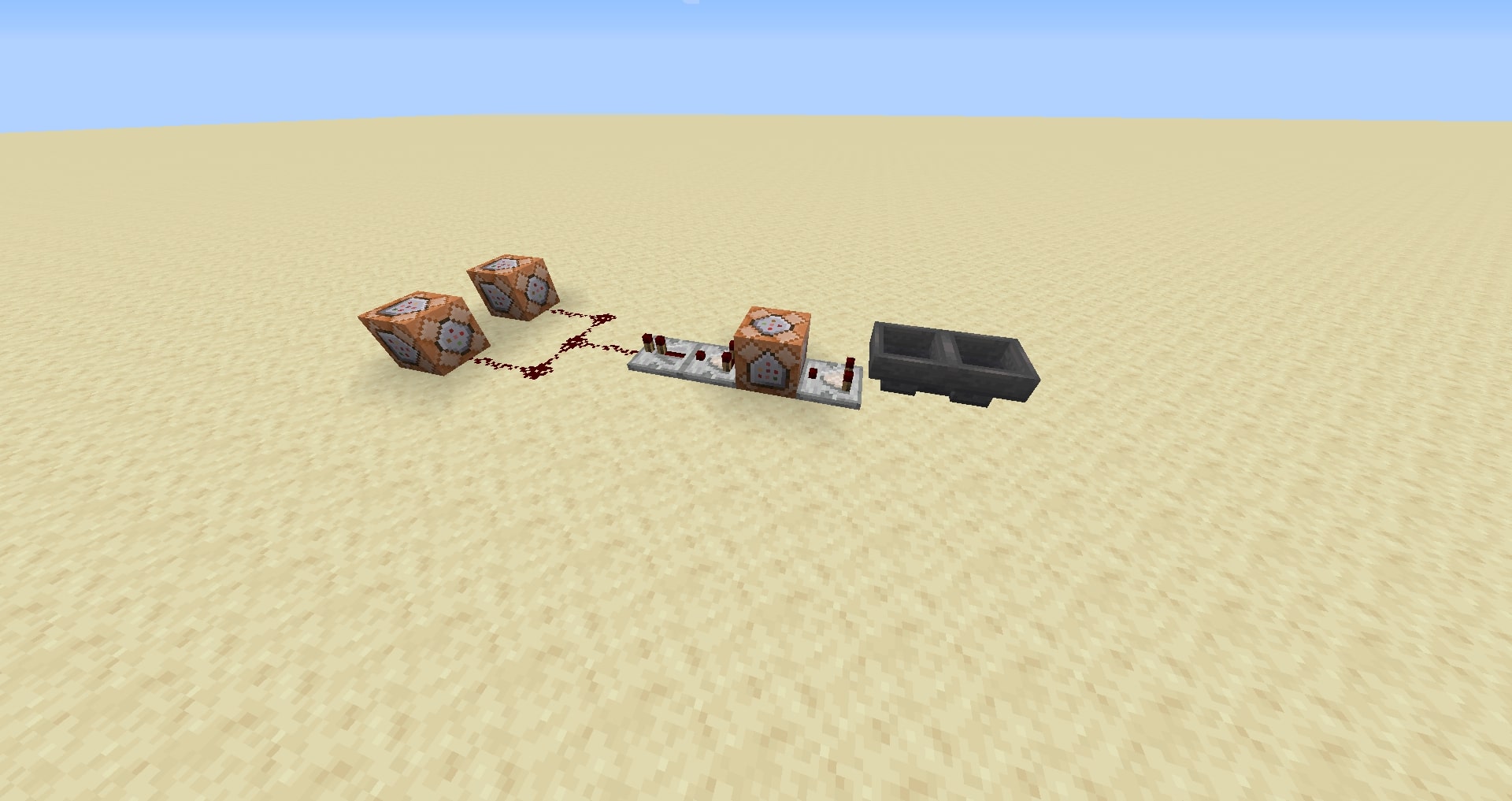 - The Command block 3 is the output in case of success. You can do whatever you want: give an effect to the player, teleport him somewhere,... You can also wire this output to a door, a piston,...
