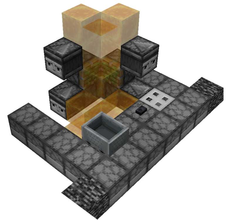 Extensions uses additional pistons to let tow along additional segments of a larger machine. Honey blocks can also be used to bypass the piston push limit by using adjacent slime block and honey block flying machines to divide the number of blocks in a structure among pistons. In Bedrock Edition, extensions are divided into leading and trailing types.