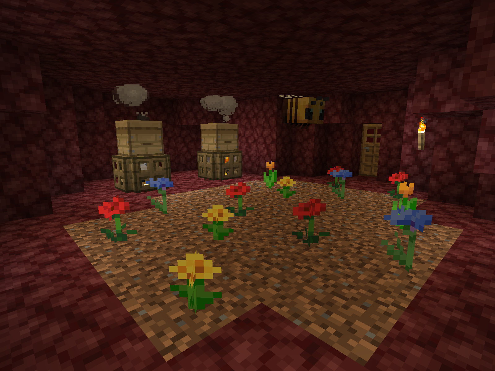 As long as bees have a beehive to live in and access to flowers, they are perfectly fine working in the dreary environment of The Nether.
